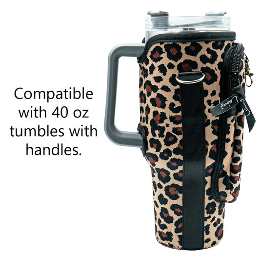 Crossbody 40 oz Tumbler" Handle" Bag - Leopard
