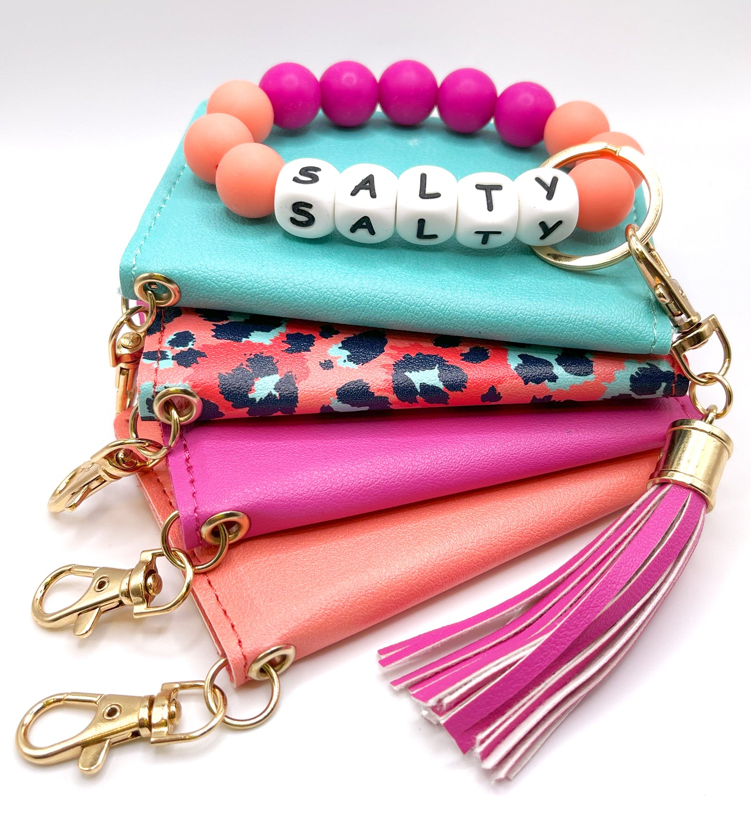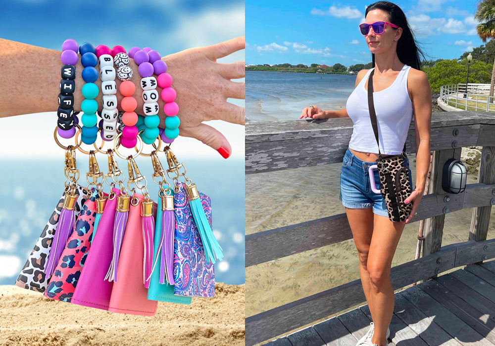 Streamline your essentials and carry them effortlessly when you match our slim ID wallet keychain with a fun bracelet keychain that can be worn around your wrist.