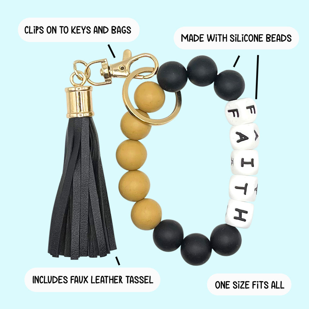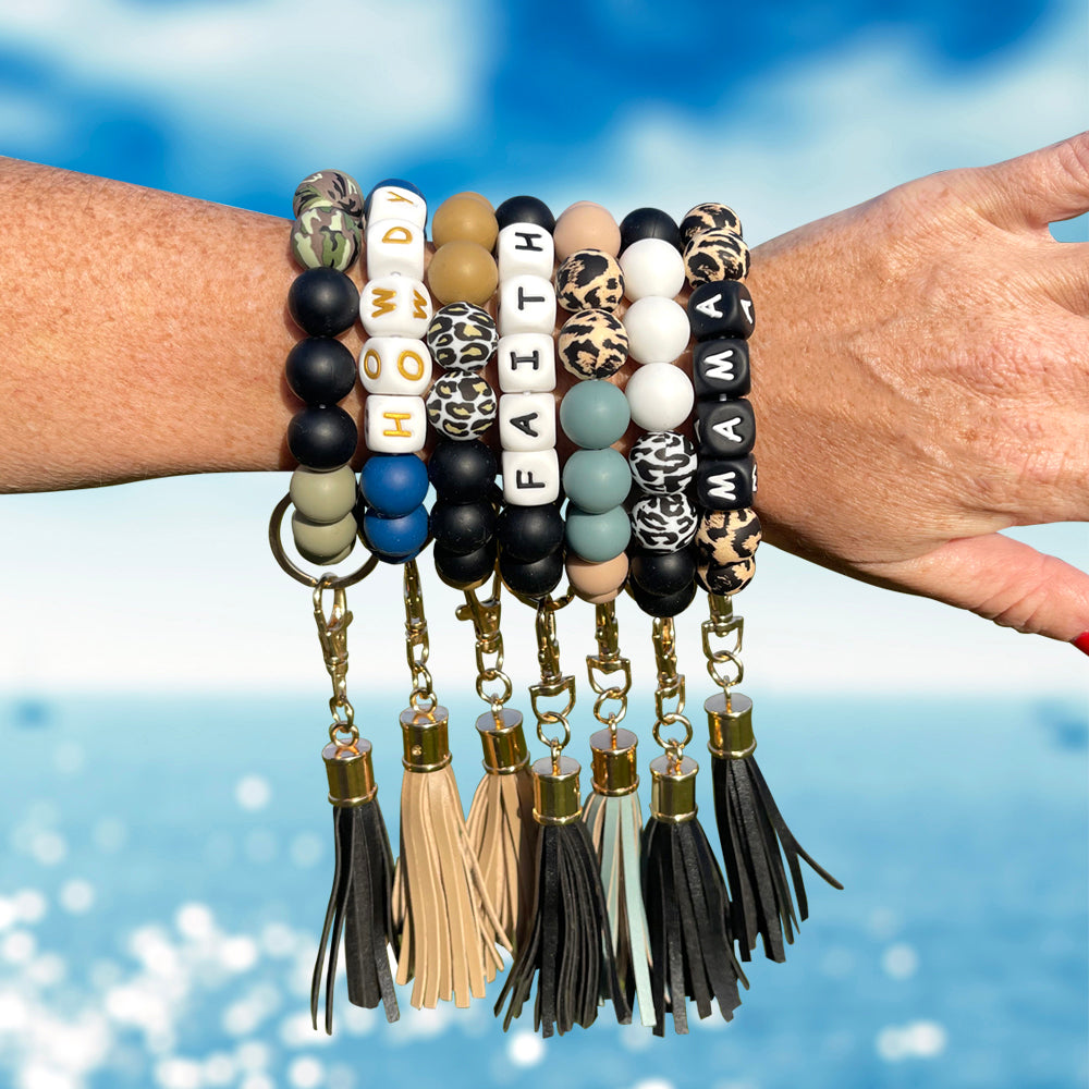 Introducing our Silicone Beaded Wristlet Keychain, featuring a playful and giftable saying along with a charming faux leather tassel. This versatile accessory effortlessly clips onto your bag or key ring, adding a touch of whimsy and functionality to your daily life.