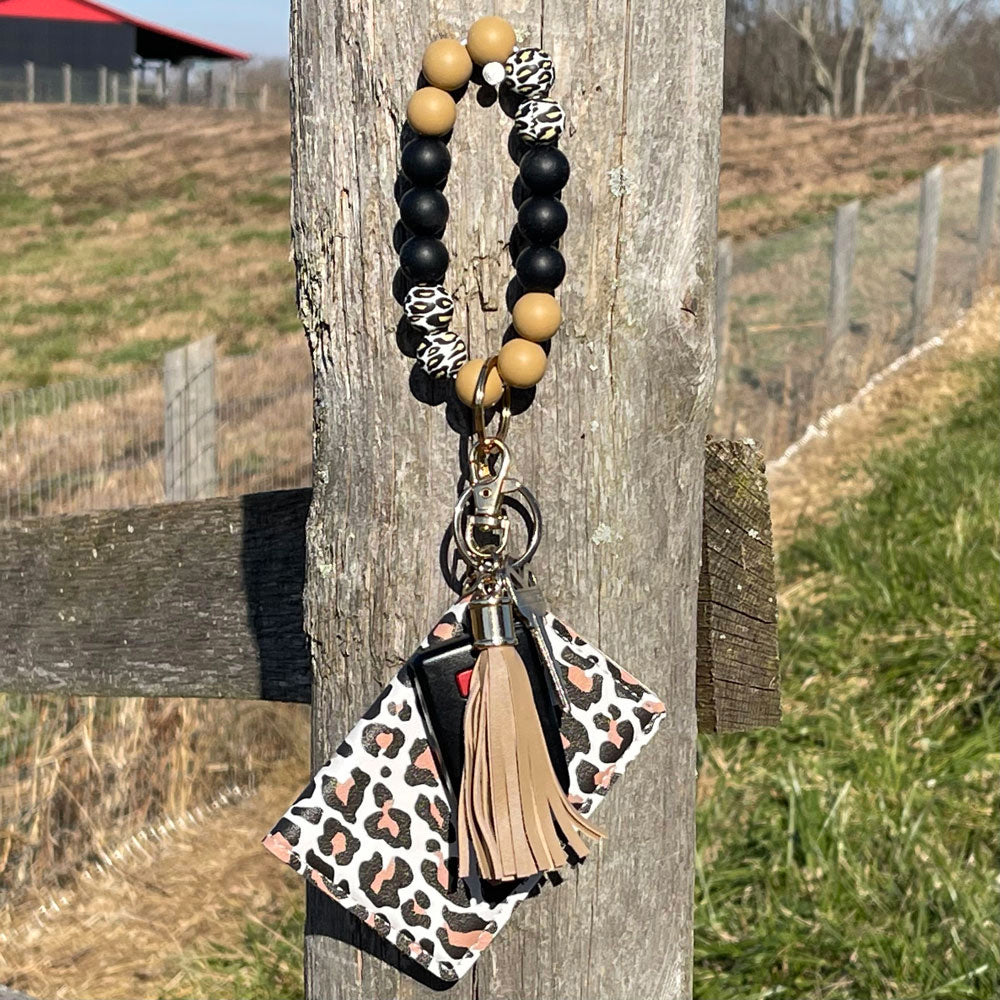 - Unique Design - This key chain wristlet bracelet is thoughtfully crafted with vibrant silicone beads in colors such as hot pink, blue, teal, coral, purple, red and black. If she loves cheetah, preppy, or cow print then she'll love this set.