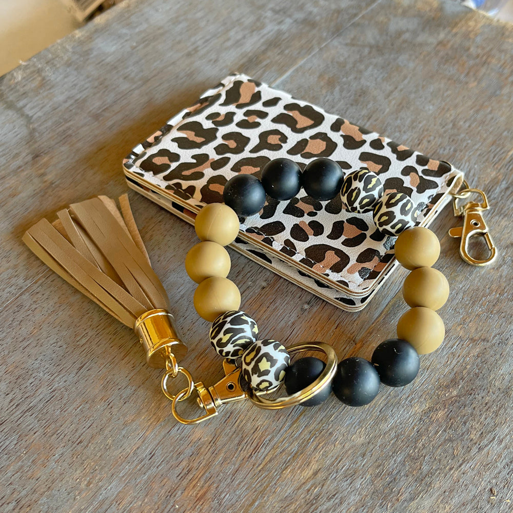 - Stylish Convenience - Discover the ID Wallet and Bracelet Combo. This wristlet wallets for women combines a silicone beaded wristlet keychain with a chic faux leather ID card holder wallet and fun tassel. Meet fashion and function in one