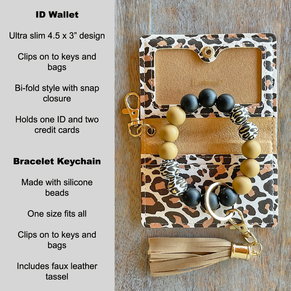 ID Wallet and Bracelet Keychain Set - White Leopard