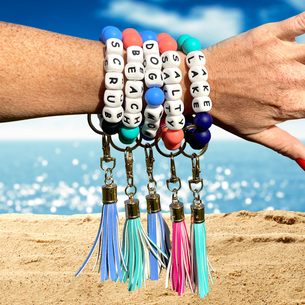 Make a statement with our Silicone Beaded Wristlet Keychain, a fun and practical addition to your accessories collection that's bound to bring a smile to your face every time you use it.