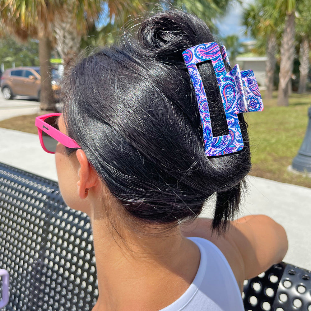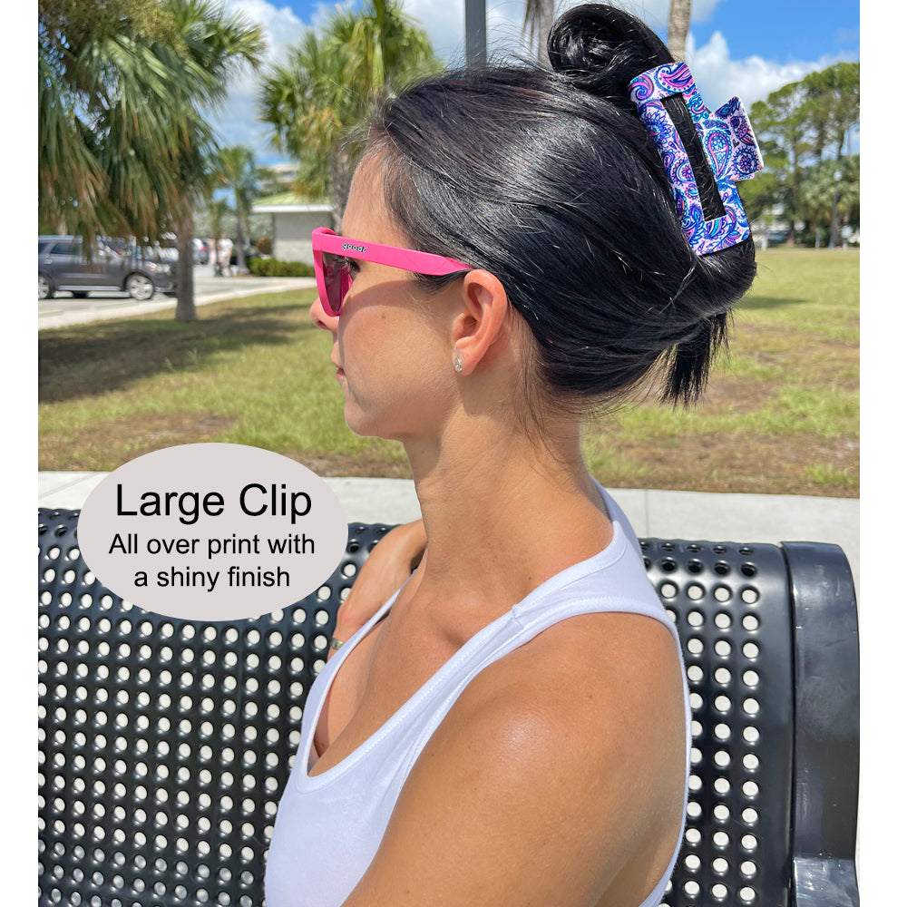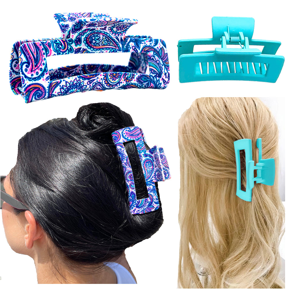 Introducing our charming Hair Clip Duo, a set of two stylish accessories designed to elevate your hair game. This set comprises a large, glossy hair clip adorned with a captivating printed pattern, and a medium-sized matte hair clip in a chic, solid color.