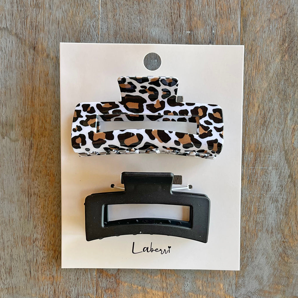 PHOTOGRAPHY SAMPLES - Set of Two Hair Clips - White Leopard & Black
