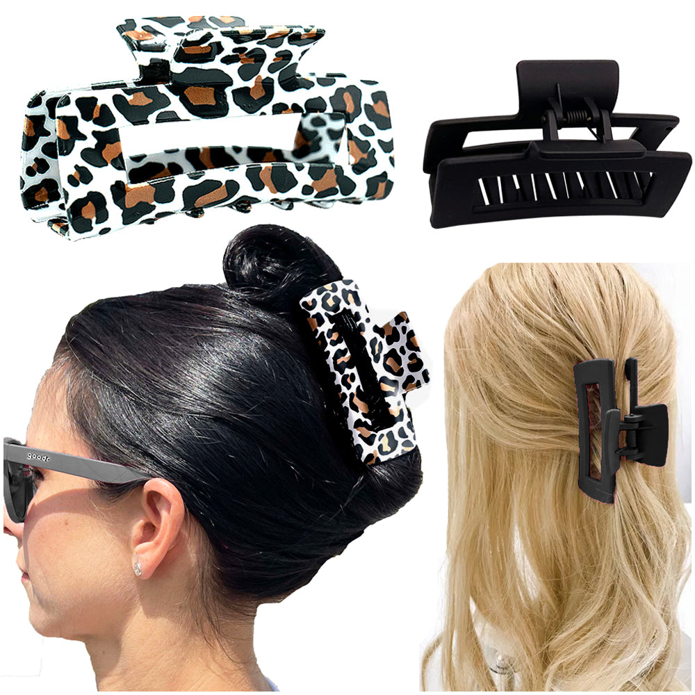 Introducing our charming Hair Clip Duo, a set of two stylish accessories designed to elevate your hair game. This set comprises a large, glossy hair clip adorned with a captivating printed pattern, and a medium-sized matte hair clip in a chic, solid color.