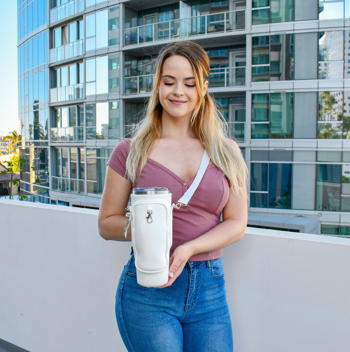 Crossbody 40 oz Tumbler" Handle" Bag - Cream