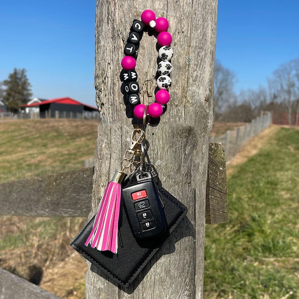 - Unique Design - This key chain wristlet bracelet is thoughtfully crafted with vibrant silicone beads in colors such as hot pink, blue, teal, coral, purple, red and black. If she loves cheetah, preppy, or cow print then she'll love this set.