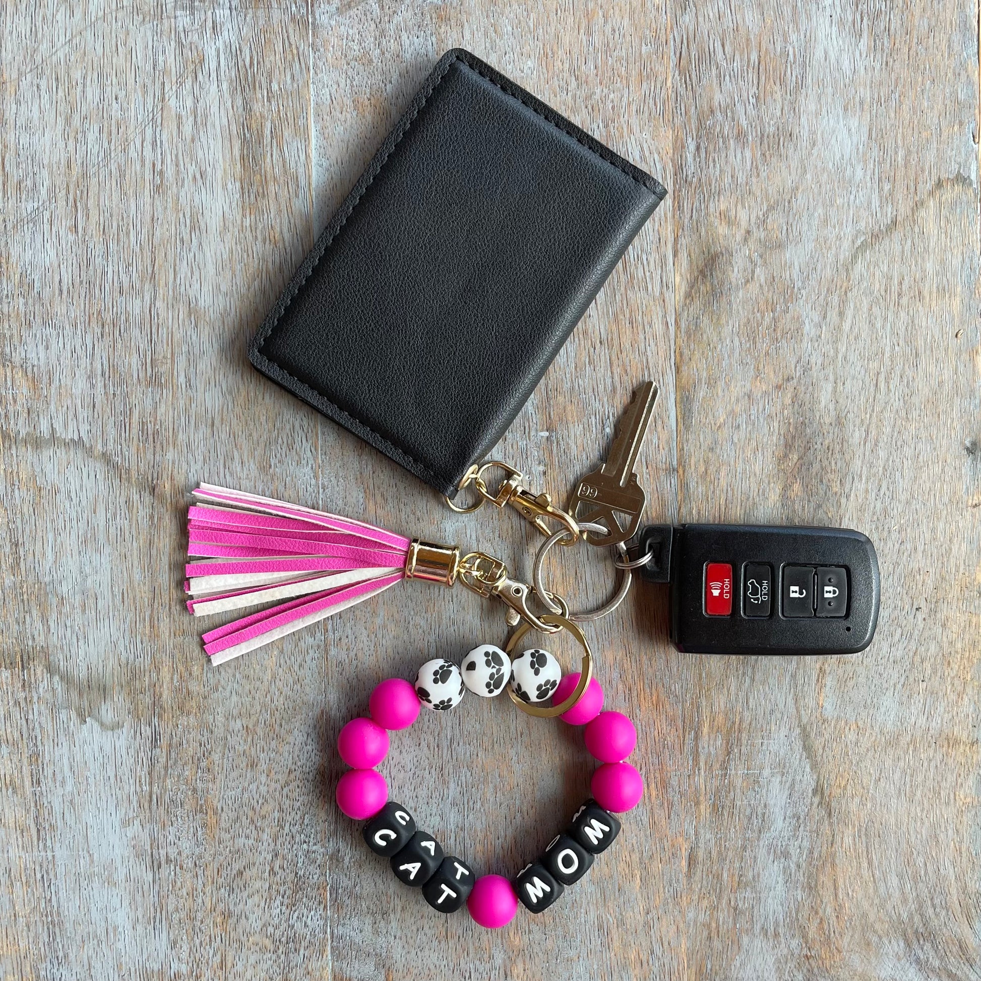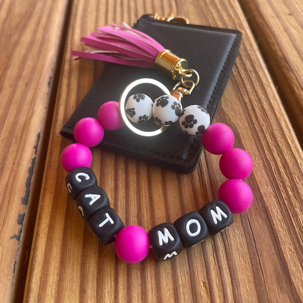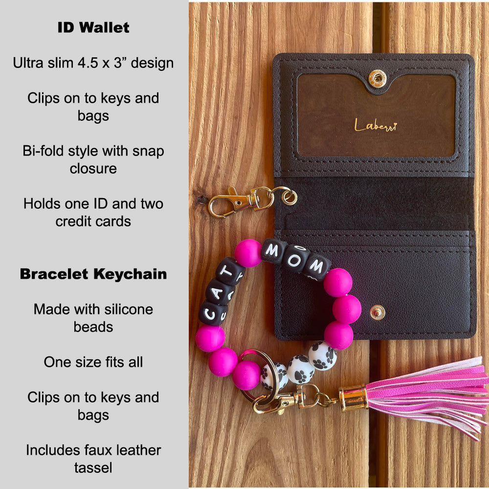 ID Wallet and Bracelet Keychain Set - Cat Mom