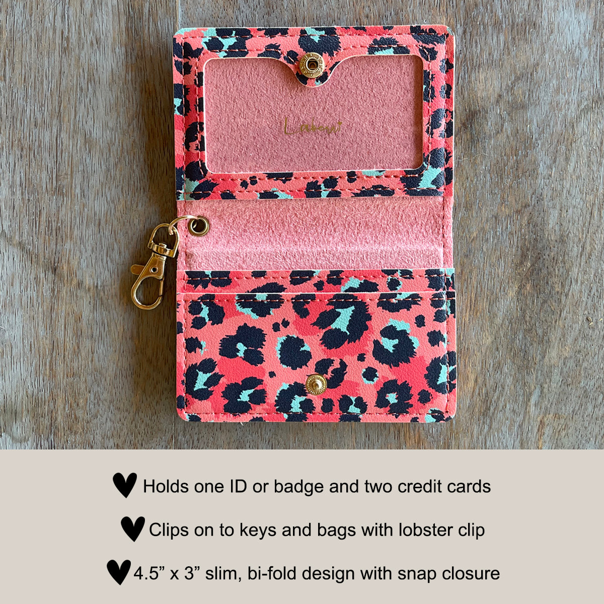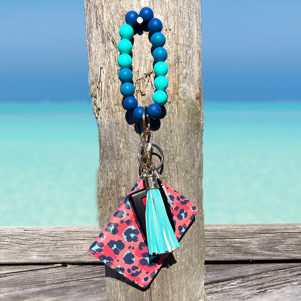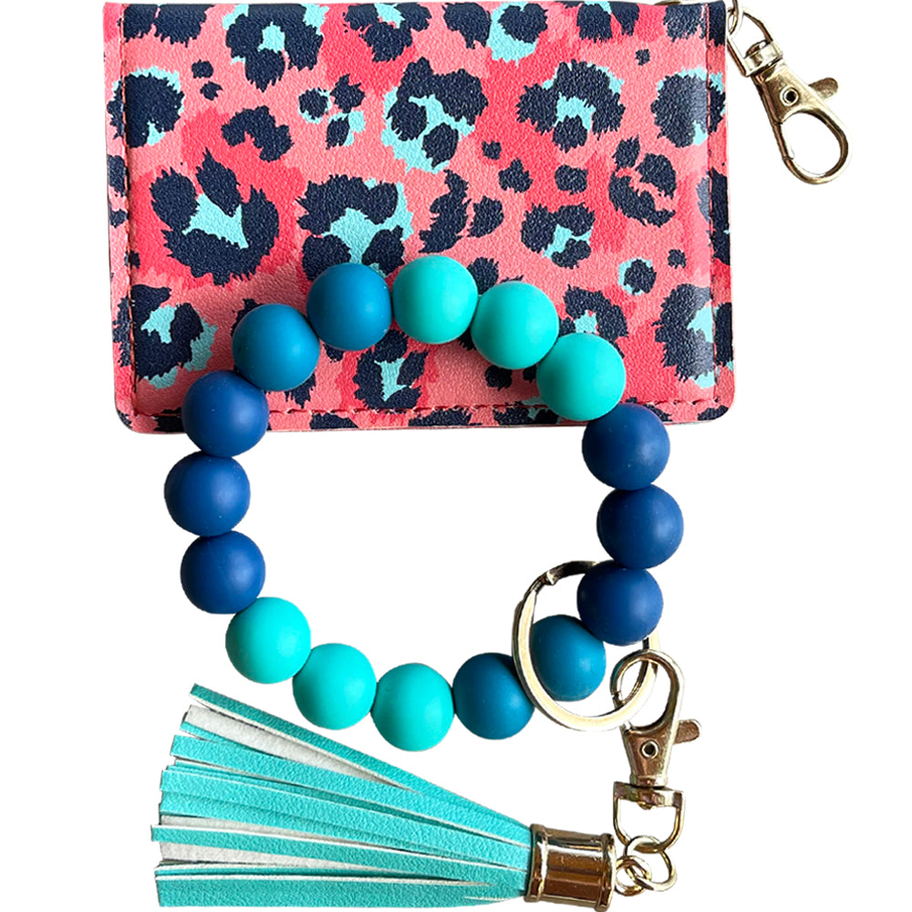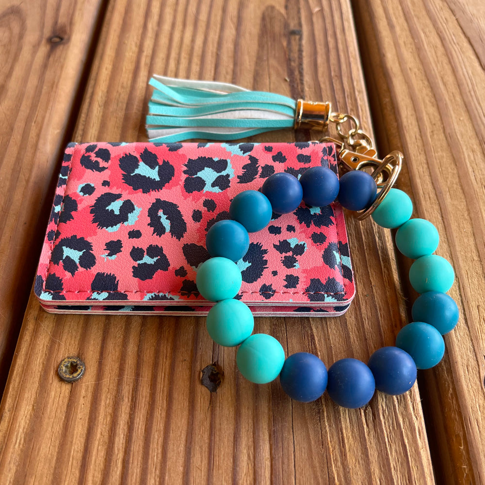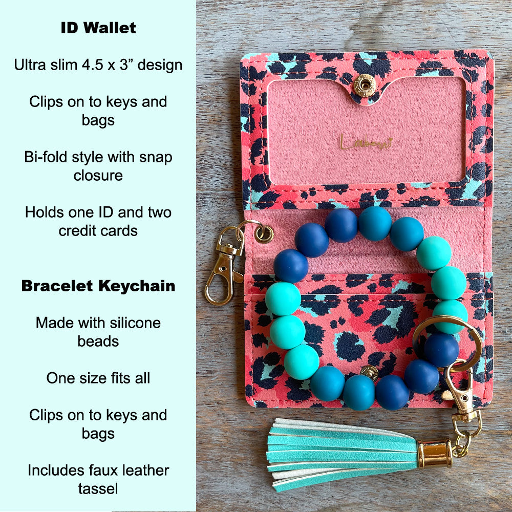 ID Wallet and Bracelet Keychain Set - Coral Leopard and Ocean