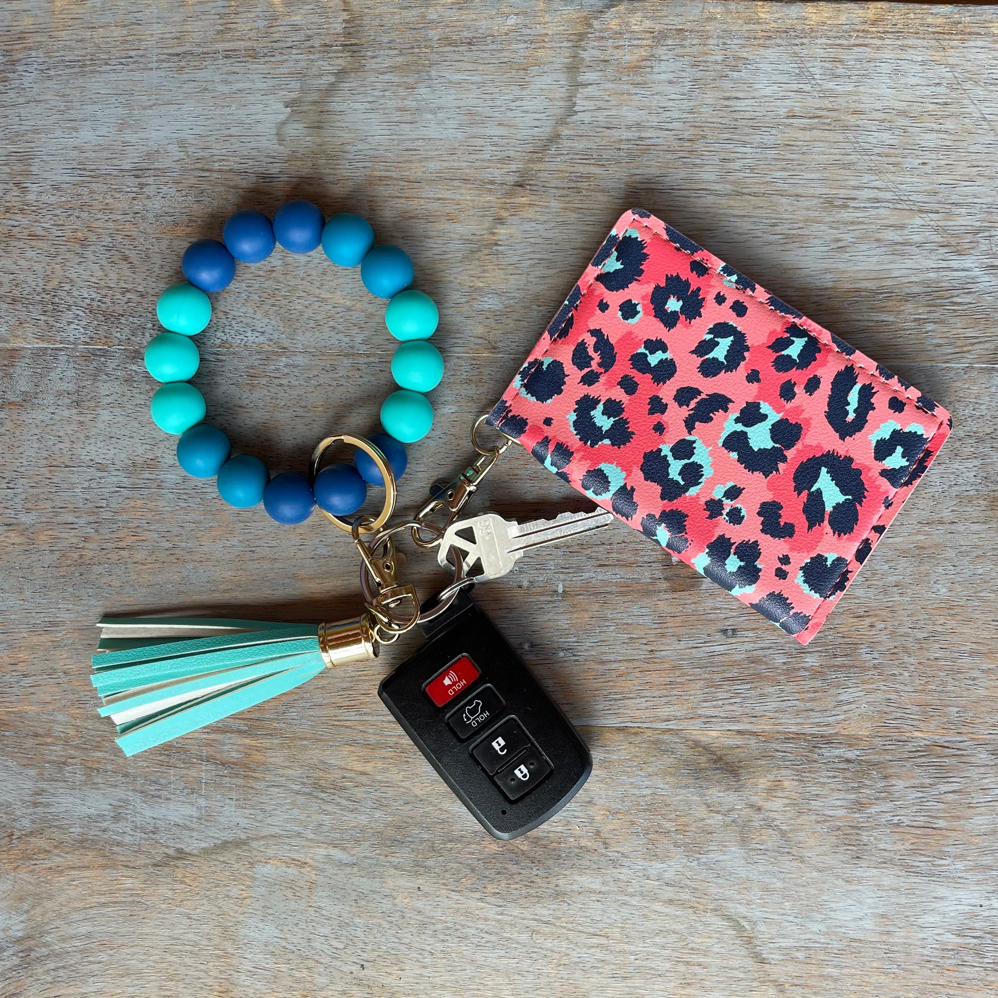 - Unique Design - This key chain wristlet bracelet is thoughtfully crafted with vibrant silicone beads in colors such as hot pink, blue, teal, coral, purple, red and black. If she loves cheetah, preppy, or cow print then she'll love this set.