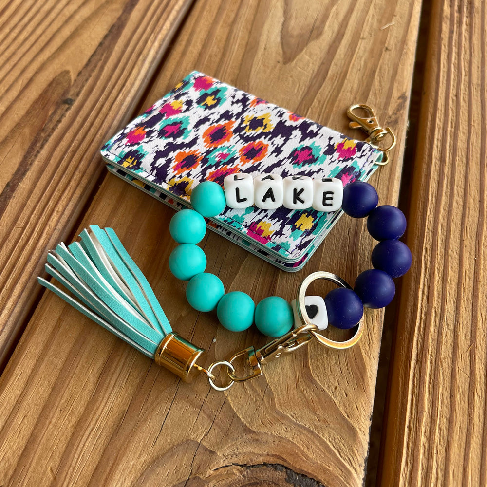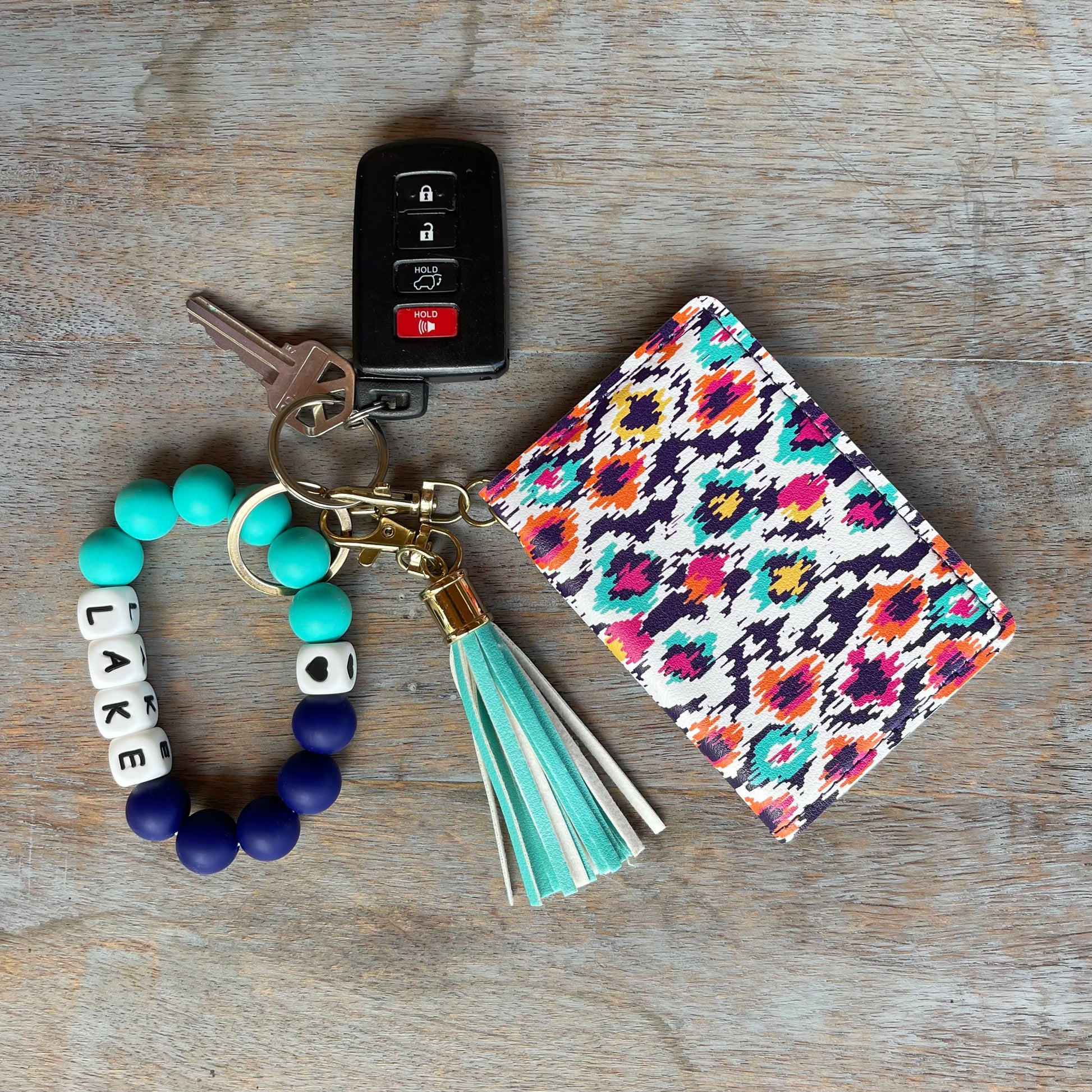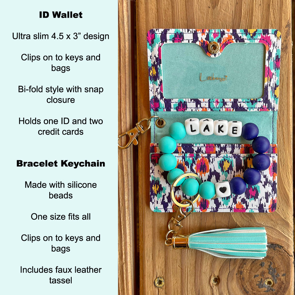 - Stylish Convenience - Discover the ID Wallet and Bracelet Combo. This wristlet wallets for women combines a silicone beaded wristlet keychain with a chic faux leather ID card holder wallet and fun tassel. Meet fashion and function in one