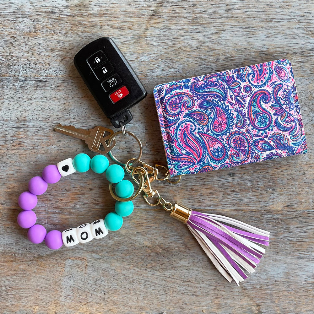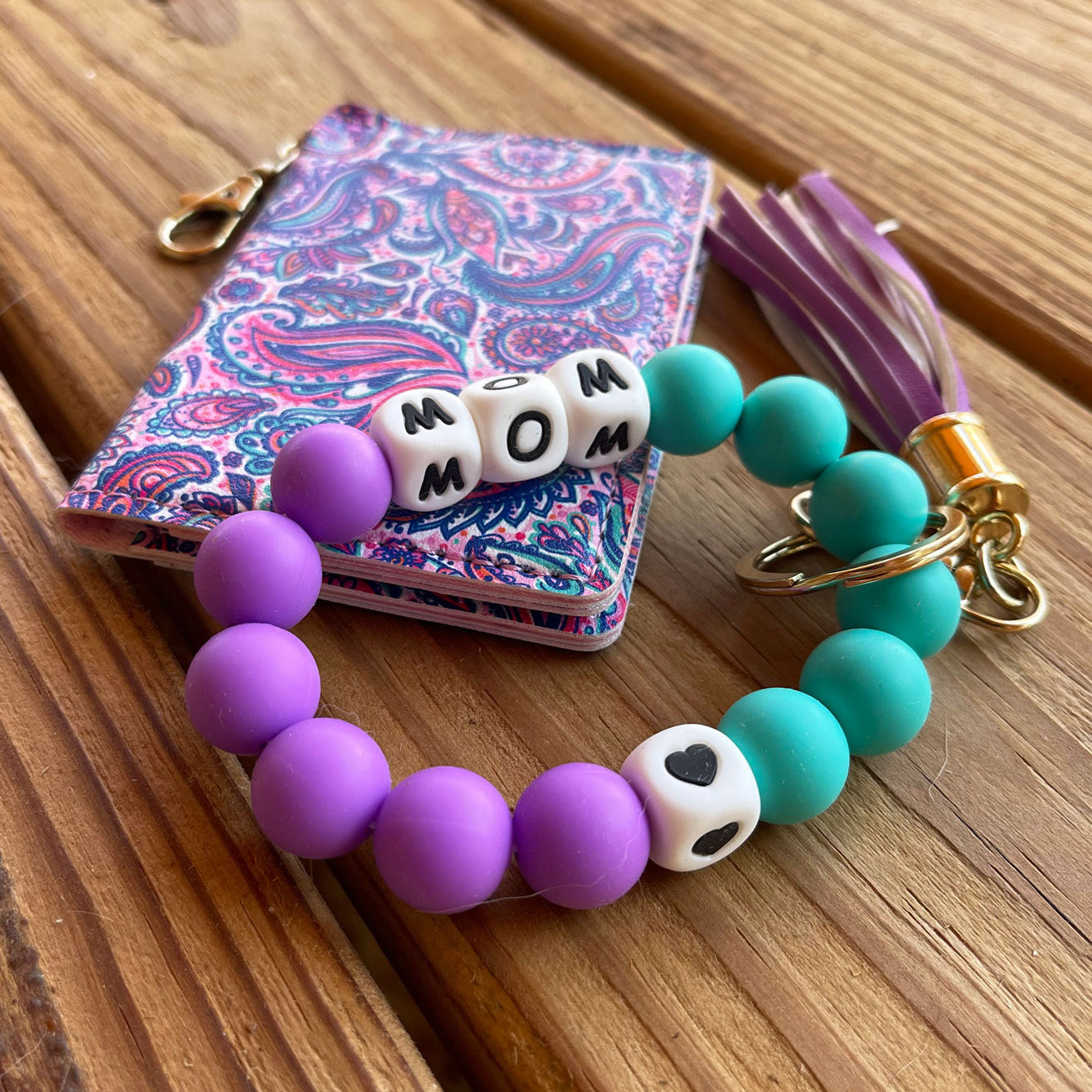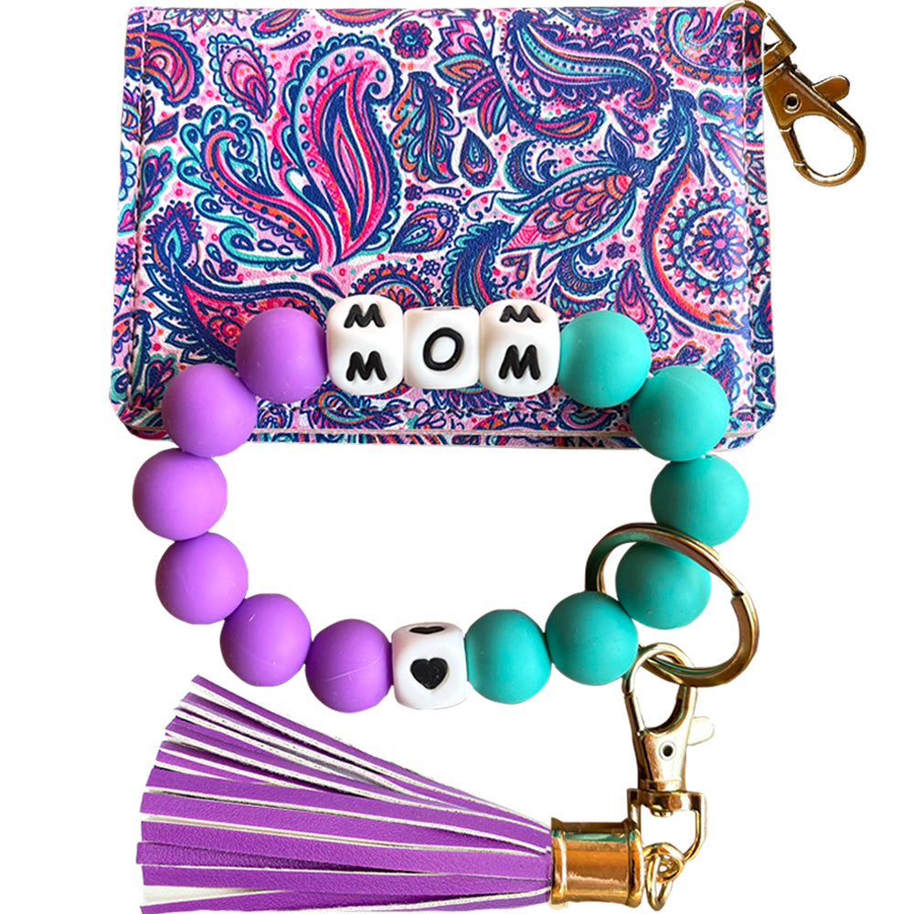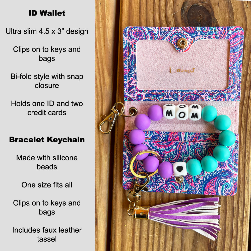 ID Wallet and Bracelet Keychain Set - Mom Paisley