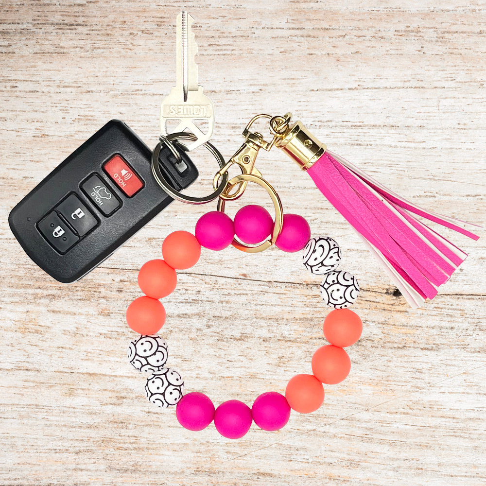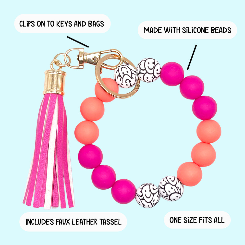 Silicone Bracelet Keychain Wristlet - Smiley Fun