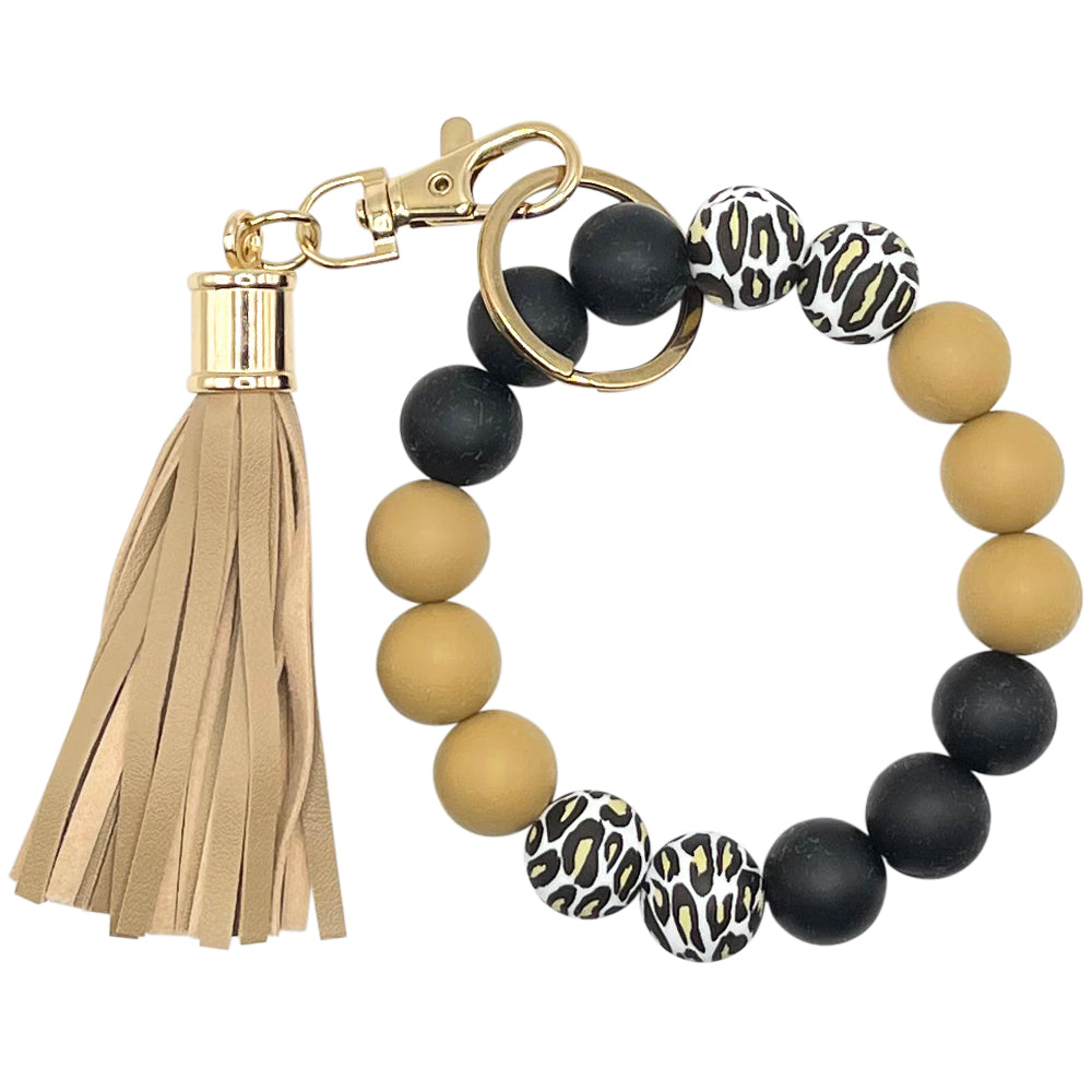 Introducing our Silicone Beaded Wristlet Keychain featuring an elegant faux leather tassel. This versatile accessory offers both style and functionality, making it a must-have addition to your everyday essentials.